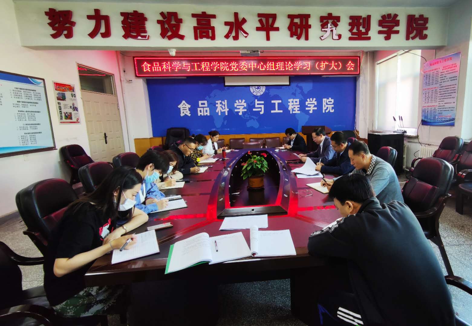 在食品楼三楼会议室召开党委理论中心组学习(扩大)会议。学院党委委员、纪委委员、各党支部书记参加了会议。会议由学院党委书记高福和同志主持。